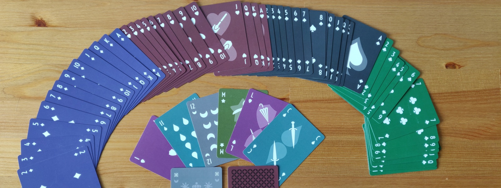 The Micaya Deck is an extended set of playing cards with a clear and minimalist design. It has 20 ranks in 8 suits.