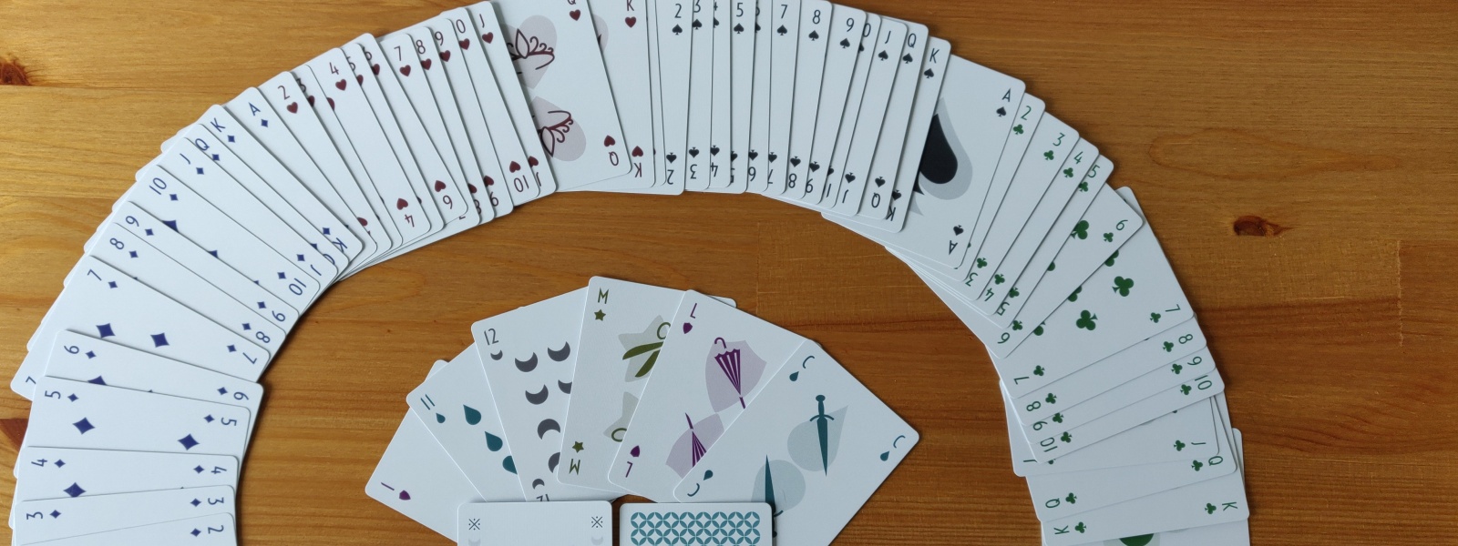 The Micaya Deck is an extended set of playing cards with a clear and minimalist design. It has 20 ranks in 8 suits.