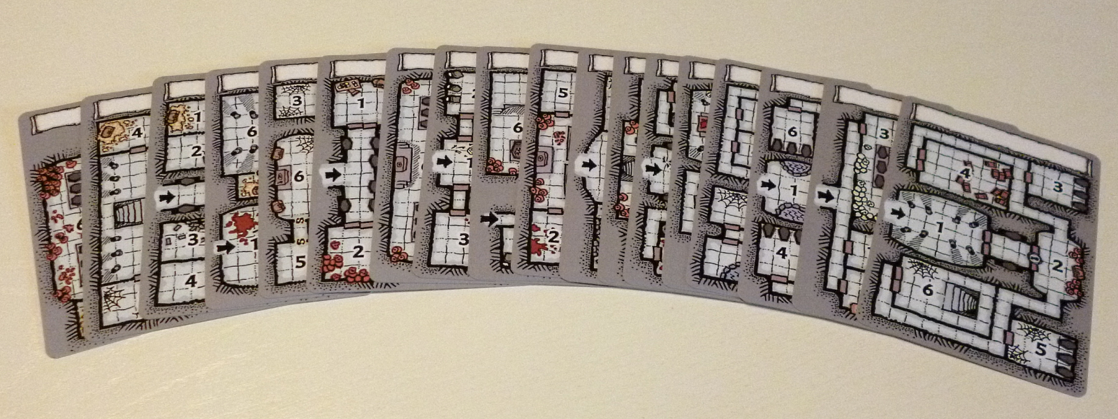Each card features a small 6-room tomb, just the right size for a single night of play. Or, you can combine multiple map cards for more expansive tombs!