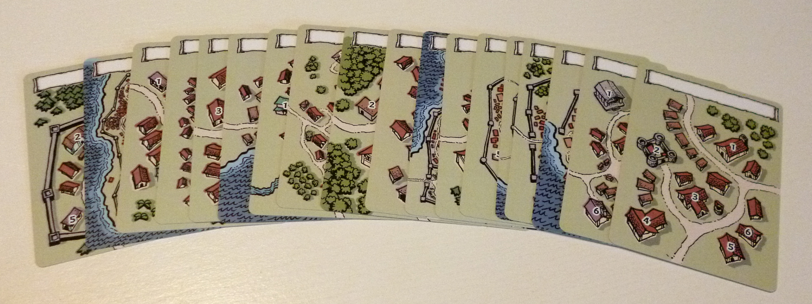 Non-Random: This pack of 18 hand-drawn map cards is not random. Each pack contains the same 18 cards!