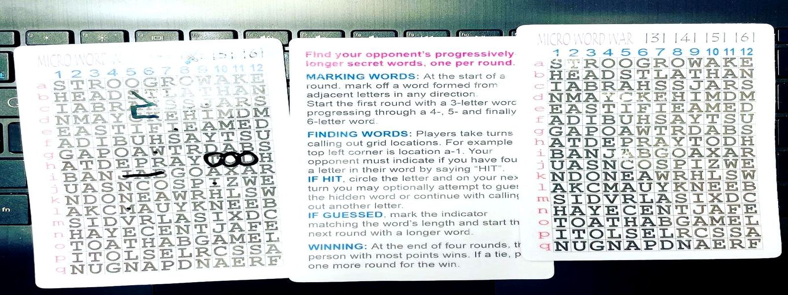 WINNING: The first person to find all of their opponent’s secret words is the winner.