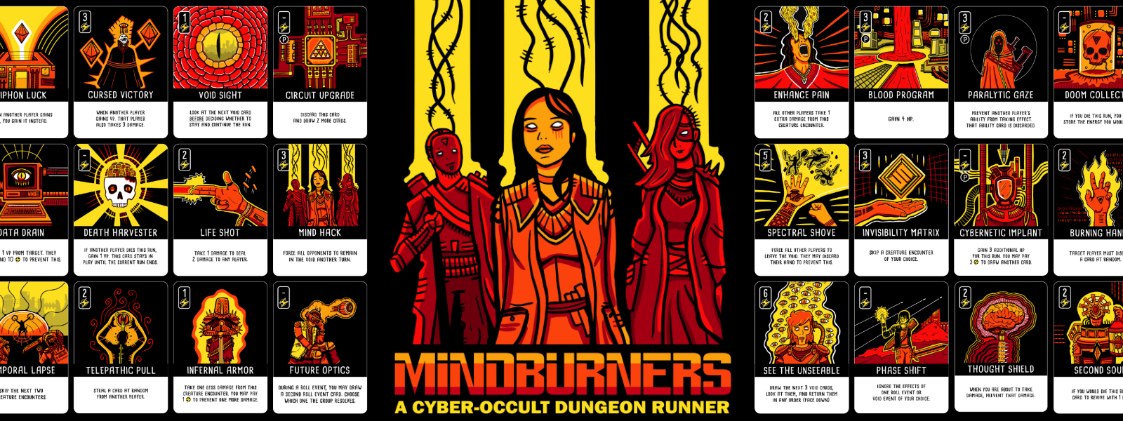 Set in a world of technology, magic, and dark corruption, MINDBURNERS is a cyber-occult dungeon runner game for 1-4 players.