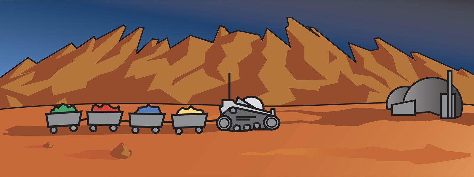 It’s all-out competition between players to harvest the mineral wealth of our neighboring planet, refine the ore extracted by the mine workers, and provide the refined minerals to their clients back on Earth.