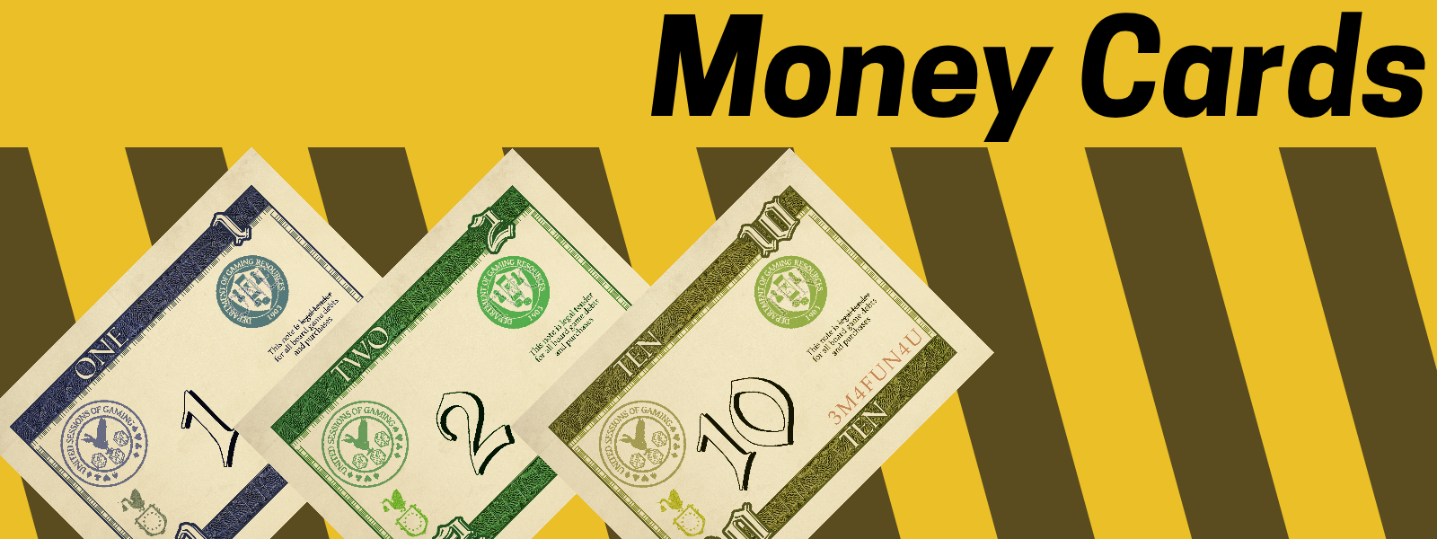 Card-based play money usable with any game that uses play money.