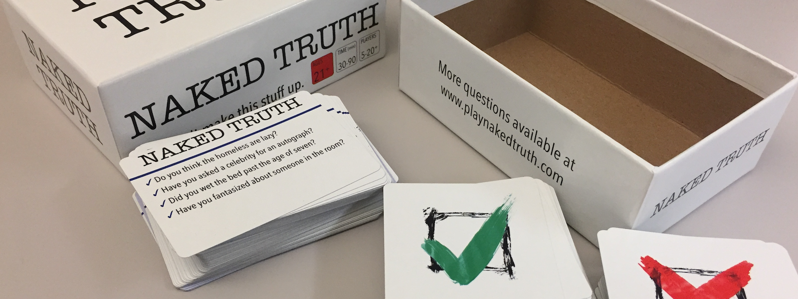 Naked Truth is a casual social party game, like Cards Against Humanity or Taboo. It is a game of edgy, personal questions about our ethics, experiences, sex, attitudes and desires.