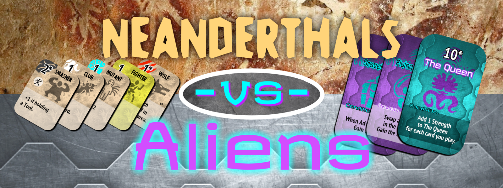 In Neanderthals Vs Aliens, you control a small clan of Neanderthals, competing against the other player's clans for the glory of defeating the Leader of the alien menace.