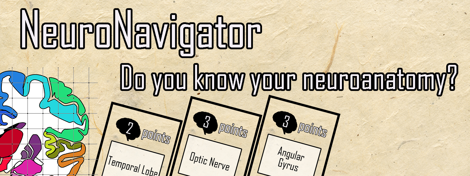 NeuroNavigator is an educational competitive board game that is designed to teach the basics of human neuroanatomy. Using intuitive movement rules to achieve specific goals, players learn the anatomical language used to describe directions in the brain and the structures and locations of major parts of the human brain.
