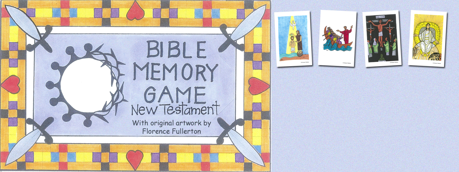 A game to challenge memory skills and a teaching tool to help remember Bible stories. The game consists of distinctive art work portraying stories of: Jesus’s birth; the shepherds; the Magi; John the Baptist; Jesus’s temptation; the call of His disciples; His miracles; the Prodigal son; the Good Samaritan; the Last Supper; Jesus’s arrest and trails; His crucifixion, burial, and resurrection; the Great Commission; Pentecost; the church; Saul’s conversion; the Epistles; John’s revelation on Patmos; the judgement; the New Jerusalem; Alpha and Omega. Each card is numbered. Key cards are included and include a Bible story title a verse reference to find the verses that tell the story pertaining to the card. A fun and unique way to learn the books and stories of the Bible. The game is a great compliment to lessons taught in Sunday school classes, Bible Clubs, Awana clubs, etc.