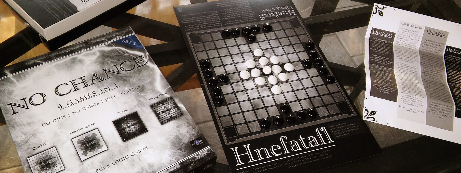 In this elegant second set of “No Chance” two players have four pure logic games. These four ancient board games feature pure strategy: