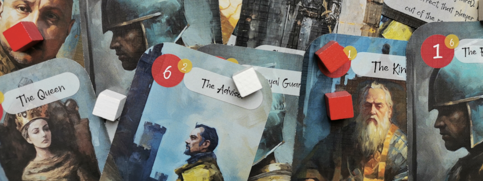 Noble Pursuits is a deduction card game for 2-4 players, where each player tries to be the last one standing or have the highest ranked card in their hand at the end of round by playing and strategically using cards with unique abilities to eliminate their opponents or protect themselves.