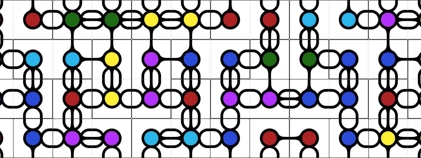 1) Connectors on connecting edges must match in number (0, 1, 2, or 3 lines.) 2) New tiles can be placed next to a tile, or overlapping one half of other tiles. 3) A tile may not completely cover another fully exposed tile.
