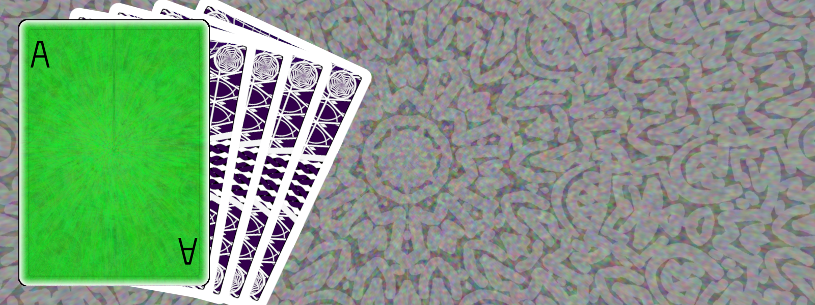 Obtuse Suits are a series of booster packs with 15 cards. The majority of the booster pack contains 14 cards that are similar to a traditional suit of U.S. playing cards. The common things that each booster pack has is a matching back-image and ranks that allow the cards to be played like a traditional deck of US playing cards. This allows players to mix and-match any 4 booster packs to make their own decks of playing cards with unique suits.