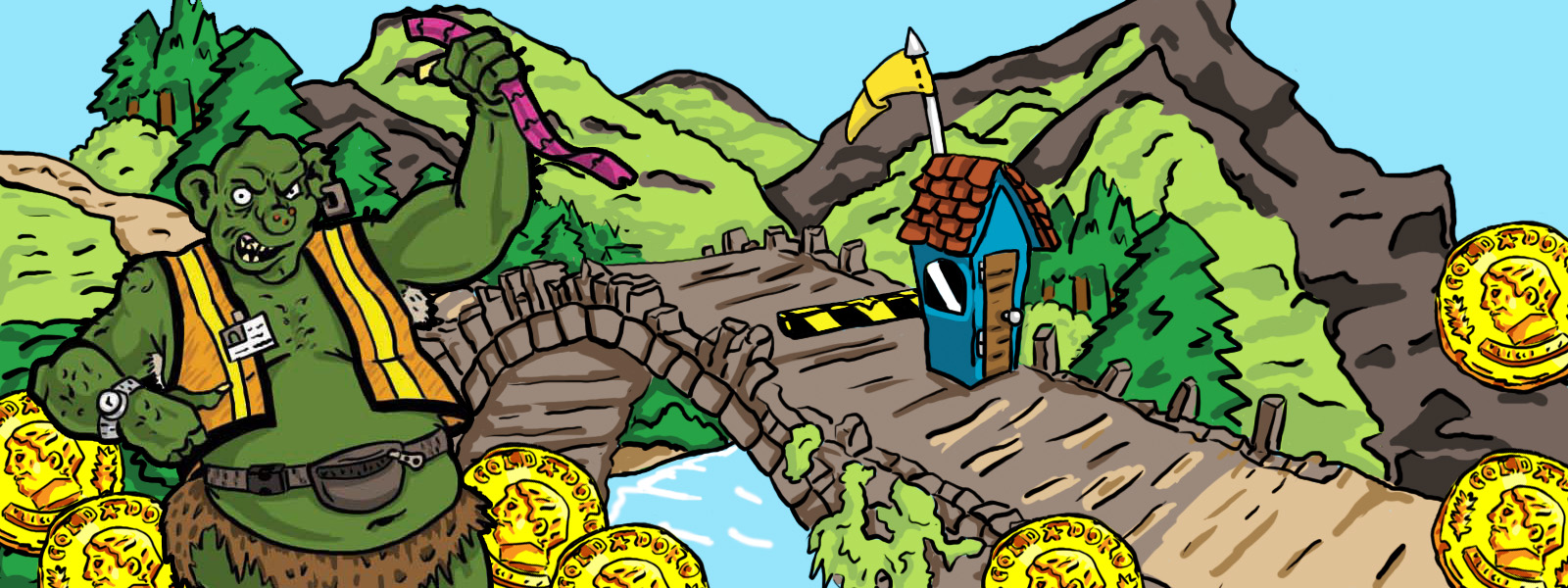 You are part of a group of adventurers setting out on a great quest. But your quest has led you to a stone bridge with a toll. A massive, monstrous, Troll is keeper of this post and demands payment to pass. But you, the cheap… um, brave adventurer will not stand for this and refuse to pay. So now you must battle the Troll to pass the bridge… and keep your wallet safe.