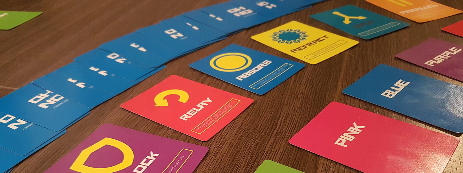 Oh No! utilizes two types of cards, Color Cards and Rule Cards. Players play Color Cards to choose which colored player will drink. Once a drink is sent to a player, they have the ability to redirect it with their Rule Cards. Drinks can be Reflected, Refracted, Paralleled, Absorbed, Split, Relayed, or Blocked. The madness ensues as drinks are bounced around between all the players until someone is no longer able to defend themselves from drinking. The first player who drinks five times is knocked out and must finish their drink!