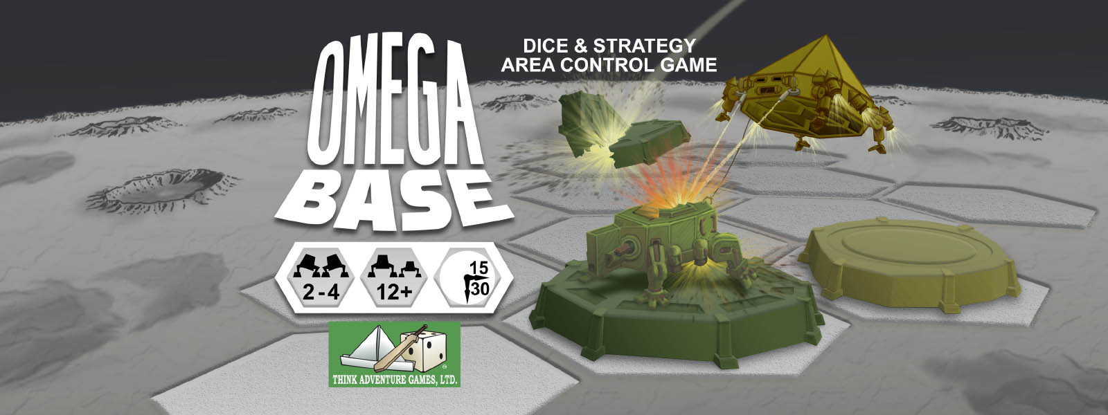 OMEGA BASE is an abstract game of area control. Command robot landers building bases, destroying other robot landers and converting the bases of opponents.