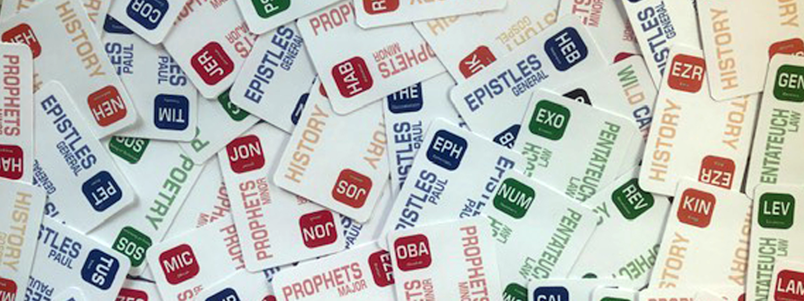 Includes all 66 books with one card for each multiple books of the same name (i.e. 1-2 Samuel, 1-2 Chronicles,...) There are 57 book cards plus 7 wild cards consisting of 2-Skips, 2-Reverses, 2-Draw2 and 1-Draw4 .