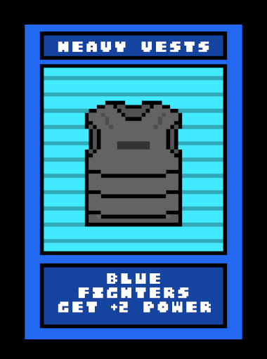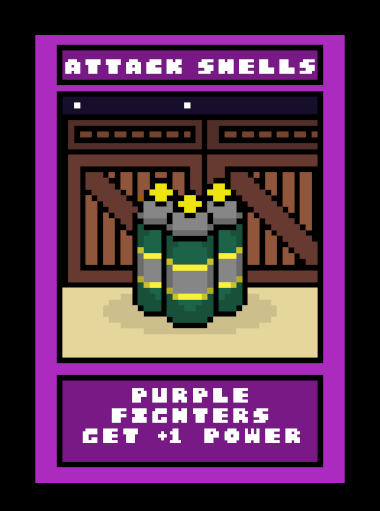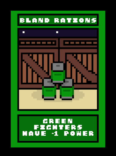 They are used right before rolling the dice in 2 Player Mode and right after in Solo Mode. These modifications are written out on each Battle Support Card and often only affect one color of fighter. Sometimes these cards affect enemy fighters as well. For example, the card, "Bland Rations," shown in green below actually makes green cards weaker rather than stronger.