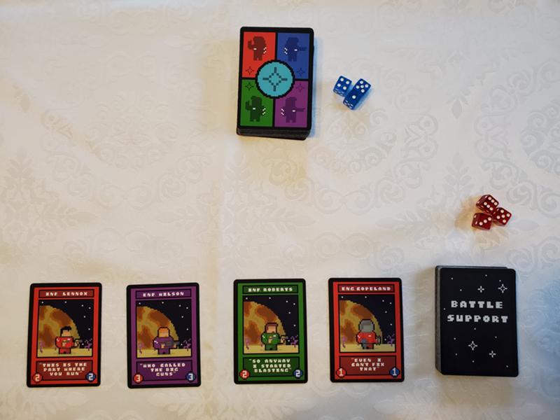 Operation Nexus is a dice rolling game about fights in outer space. Use advanced technology and sabotage cards to gain the upper hand in a fight for the most powerful fuel ever concieved. Send troop cards to gather nexus and stop your enemies from getting any nexus for themselves in a war for the future of the universe.