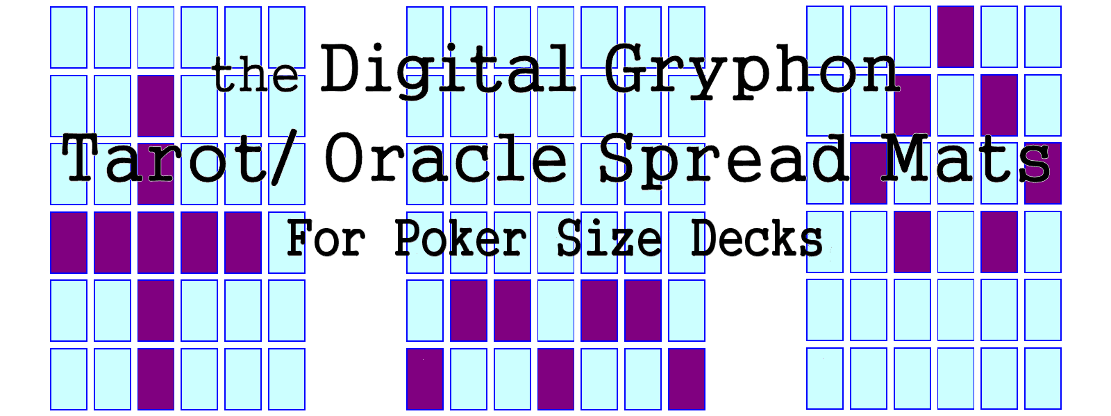 A pair of 11"x17" durable card stock mats. Placed together the fronts create a 6x6 grid to lay out Tarot/ Oracle card readings. That's enough room to do a leNormand Grand Tableau (6x6).