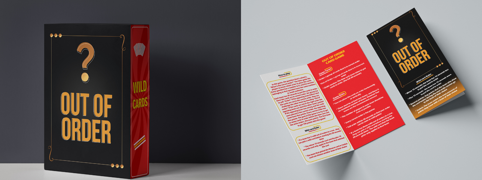 In this game, the question that is asked is, “What is the correct order?” The hints guide the players to know which order to place the cards. Every question has a number to it, and the answers belonging to that question have the same number to avoid confusion. Each team has 30 seconds to put the cards in order. Once the cards are in the correct order, the group has to yell “Order!” If the opposing team believes that the cards are not in the correct order, they can challenge the other team by shouting “Out of Order!” If the cards are not in the right order, the opposing team can steal the other team’s points! If the opposing team was wrong and the cards were placed in the correct order, the opposing team loses five points. Every correct order is five points. The goal of this game is to try to get as many cards in order before the time runs out; the more orders, the more points. The first team to get to 100 points wins the game!