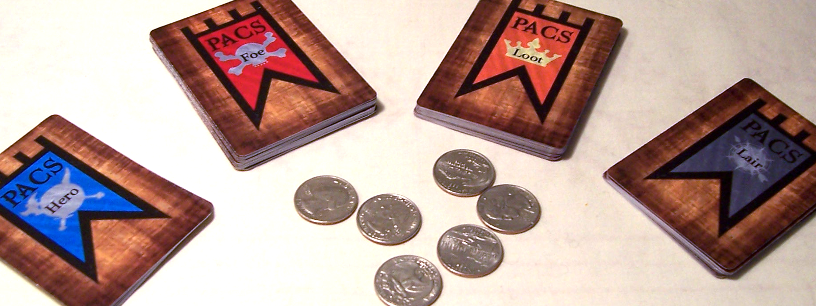 PACS (Pocket Adventures Card System) is an entire RPG (Role Playing Game) that fits into a deck of cards. As a non-collectable card game, with a Base Set of PACS and a pocketful of change you're ready for hours of play where no two sessions need ever be the same. Players familiar with RPGs will be right at home, and those new to RPGs will find PACS as an excellent entry point for the genre.