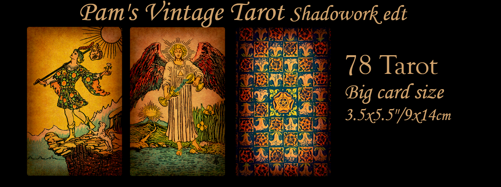 Pam's Vintage Tarot is restored edition of one of the oldest Tarot decks, illustrated by Pamela Colman Smith. It was result of my commission work thanks to courtesy of Tarot deck collector from Australia who provided high resolution scans of the deck from her private collection. (Note: this is not the same deck as US Games or any other copyright RWS Tarot but much older first edition!) Specific modification to be made with goal of creating more genuine ageless design that can’t be linked for specific geographic place, ethnicity, or time. I must say, we are all happy seeing result; think PCS would approve too! :) previous edt of Pam’s Vintage Tarot were available for sale only for limited time & number of decks in order to preserve spirit of old printer times! with promo price first month after publishing as Thank You for All supports & love this deck get!:)