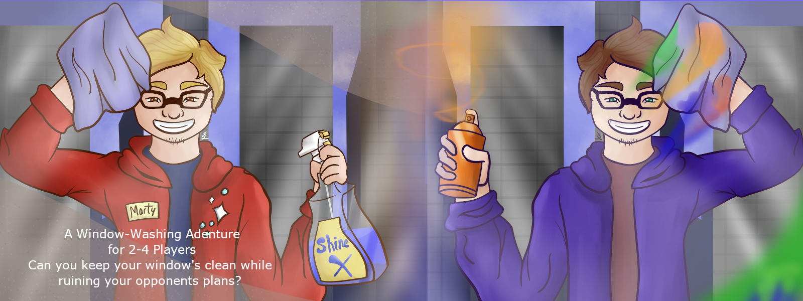 Pane in the Glass is a Flip and Fill game where you are competing with other window washers to keep your windows clean! Rainstorms will wash some of your windows, wind storms may blow dirt from your opponents windows onto your windows, and townsfolk will hold festivals and paint messages on your windows.