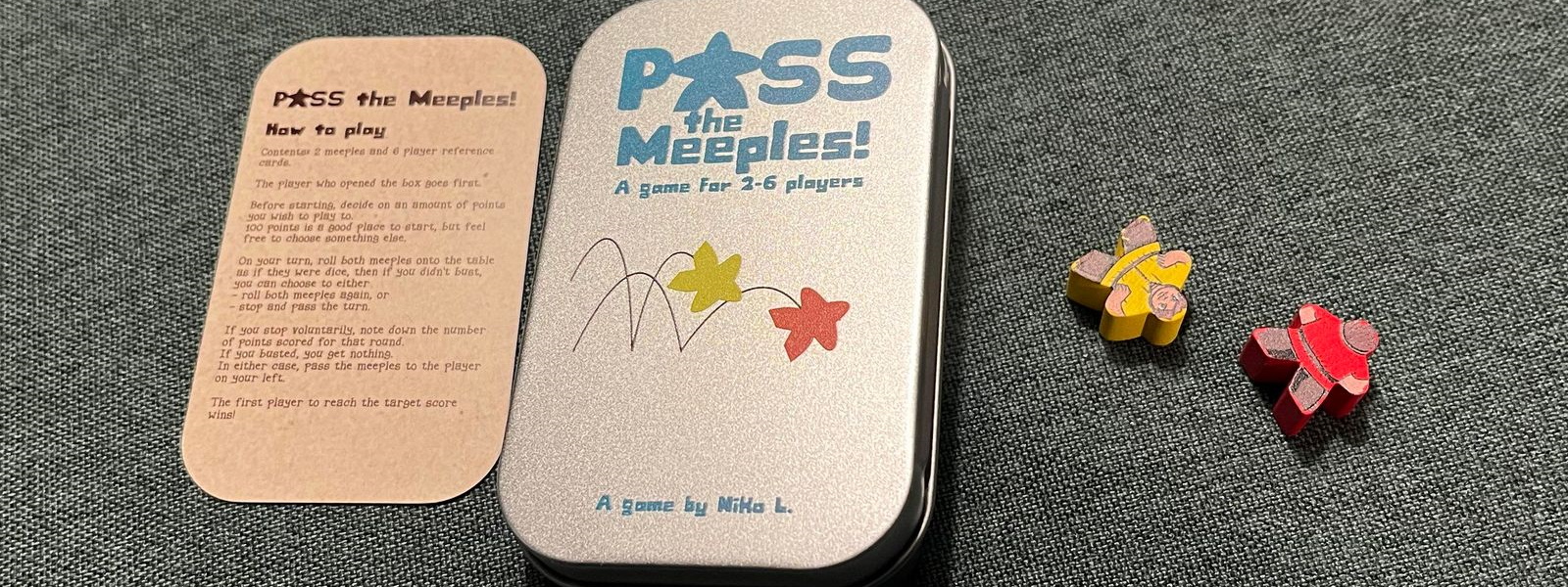 Pass the Meeples is a push-your-luck game based on the public domain game Pig.