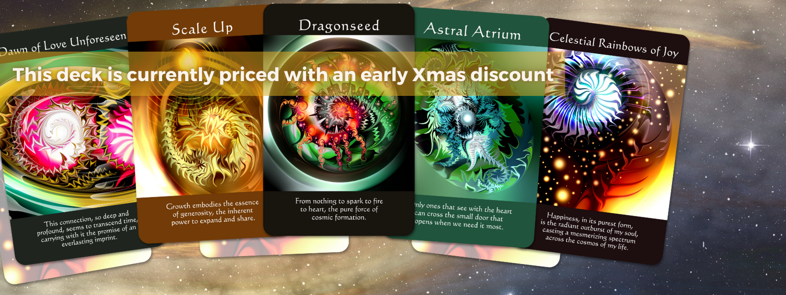 Launching this deck in the Year of the Dragon has been a deliberate choice, underscoring the profound connection we all share with the cosmos and the timely influence of dragon energy in our lives.