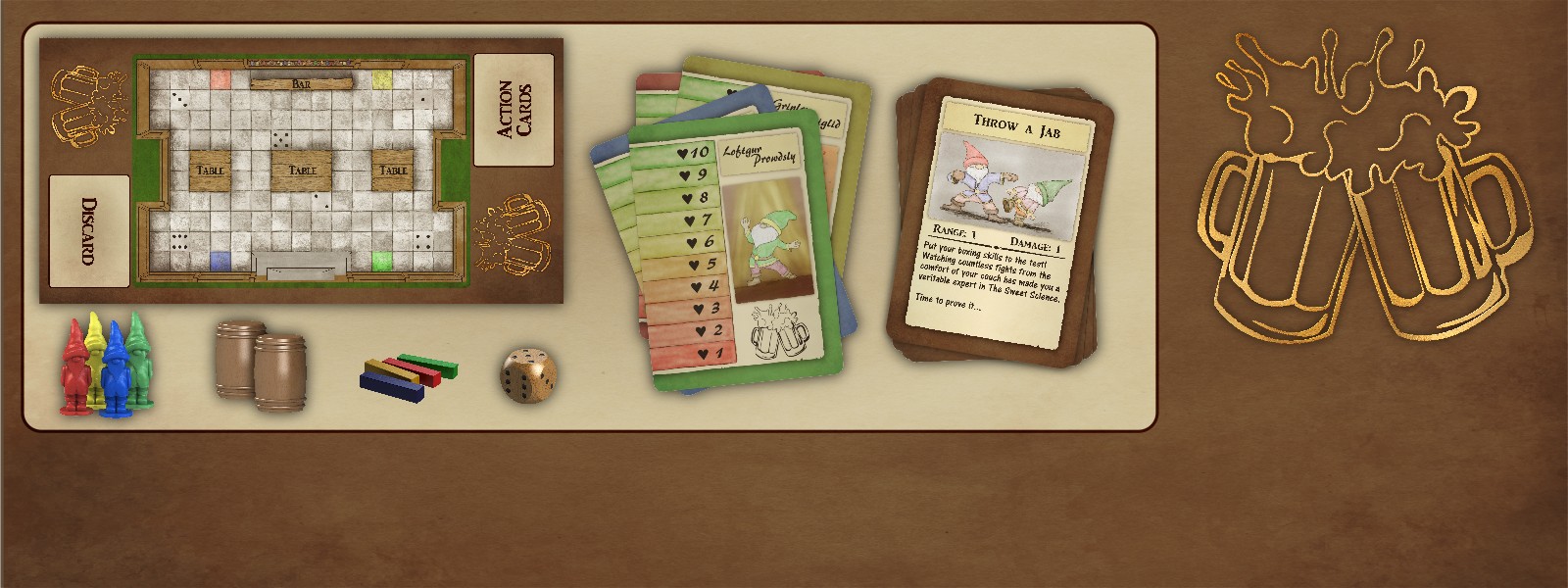 The goal of the game is to be the last gnome standing. You accomplish this by moving around the baord, drawing/playing action cards, and finding root beer barrels. If you run out of health points at any time during the game, you have been eliminated. Remove your gnome from the board and decide which one of the remaining players you're going to root for.