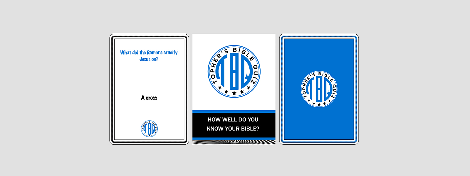Topher's Bible Quiz (Kids Edition) is designed to help build and reinforce your knowledge about the Bible. Unlike Topher’s Bible Quiz Card Game, this game comes with the answers on the cards for ease of play for kids and adults.