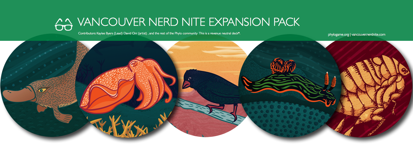 This set is associated with the Vancouver Nerd Nite organization, and highlights 9 organisms that were suggested during one of their events. Specifically, organisms were solicited based on “coolness” and/or “peculiarity.” Note that this is an expansion deck and cannot be played on its own.