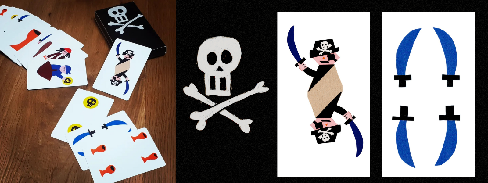 With these Italian cards, you can play multiple games like Briscola and Scopa. The cards are pirate themed and the illustrations are cute and fun. The drawings are made from colored cards cut and glued and small strokes in pen. The deck is small and portable, great for playing on the go.