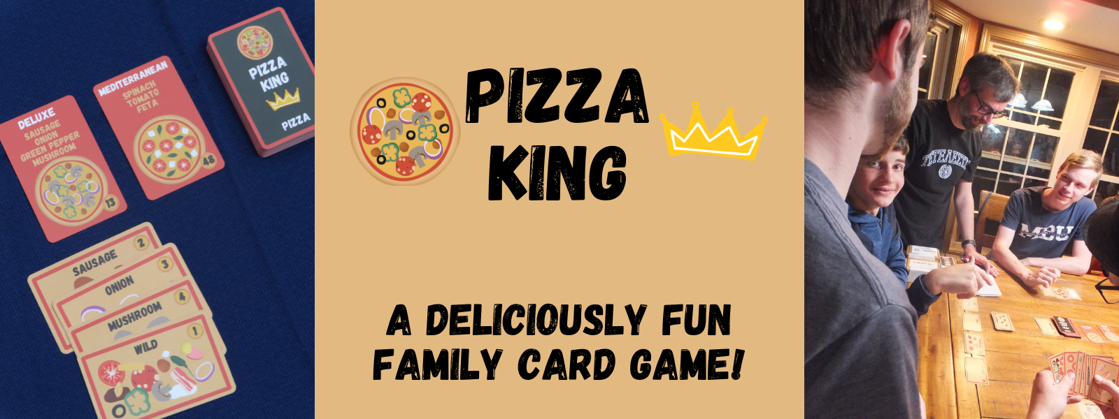 Pizza King began as an idea over the 2022 Christmas holidays. The basic idea is to collect Topping Cards in order to make Pizzas. The underlying goals were to make a game that is fun, easy to play, has some strategy involved, but is random enough that anyone has a chance to win.