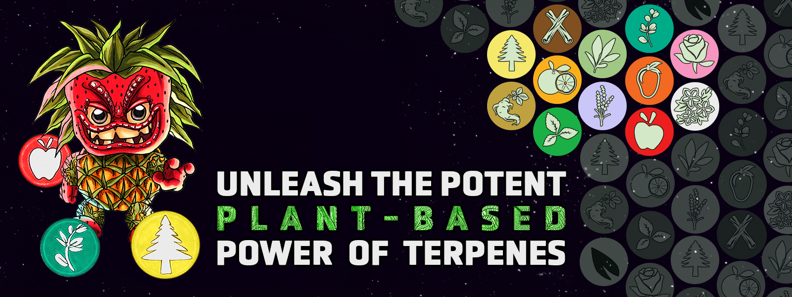 Terp cards feature extraterrestrial terpenes called Terpinoids. Each has four Entourage Effects that can be used to manipulate the potency level of the game.