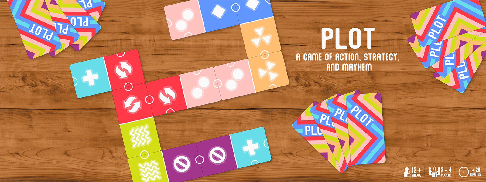 Plot is a cause and effect card game where players take turns matching symbols and sabotaging their opponents.