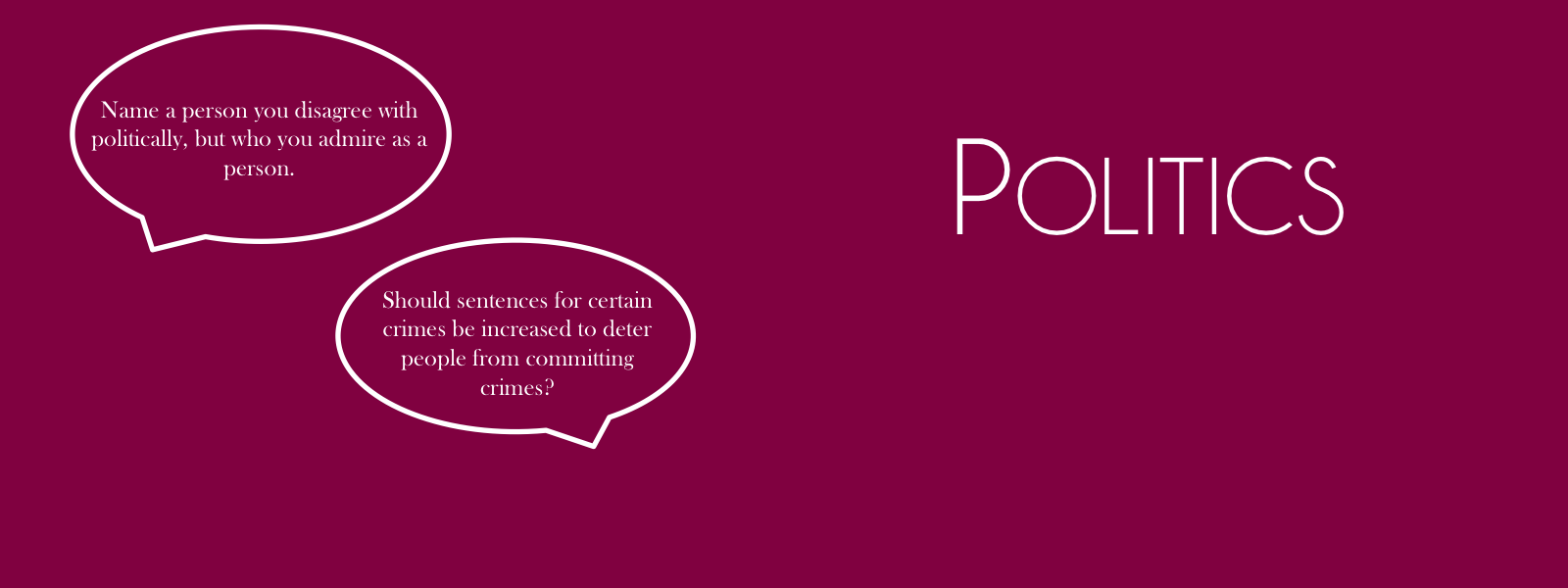 These are just some of the political and ethical questions you and your friends must answer in this different pack of conversations starters that is guaranteed to spark deeper and more meaningful conversation.