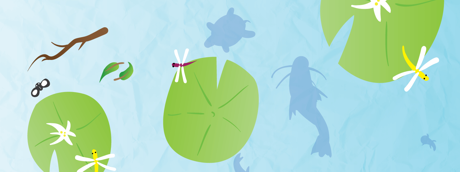 A day in the life of the average Frog: Hop a lot. Explore the Pond. Eat Bugs. Avoid the Fish and Snakes!