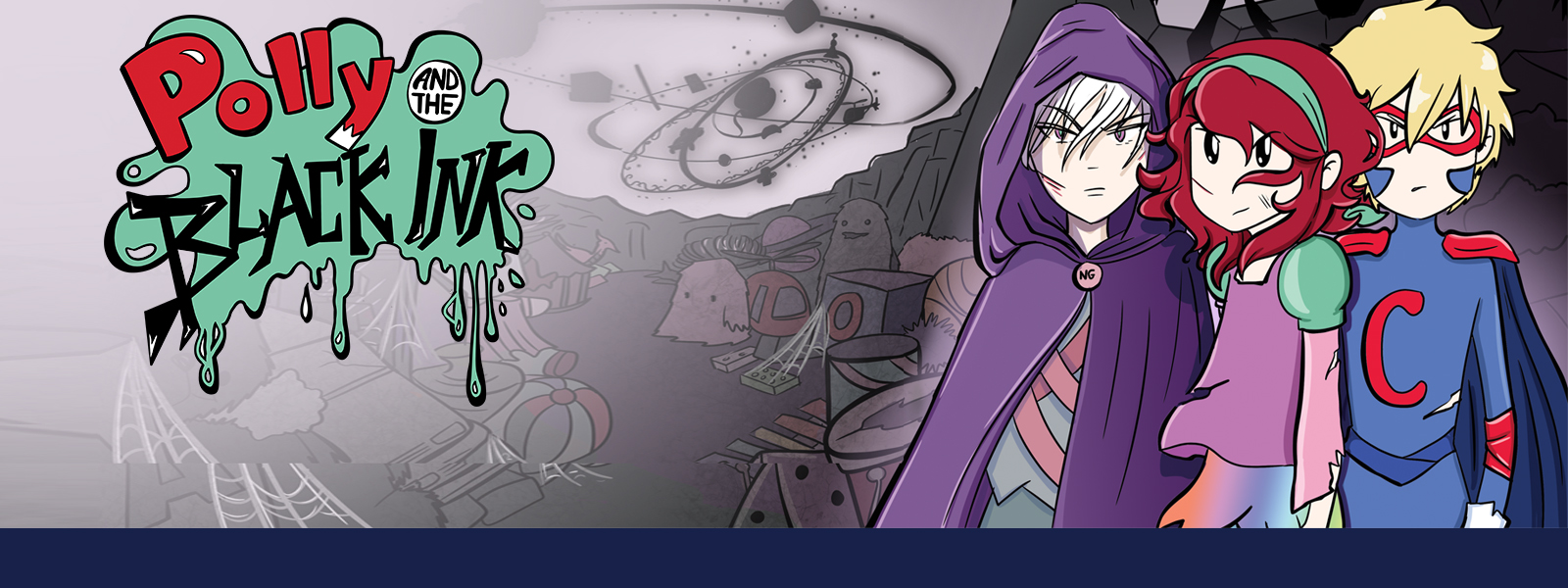 Polly and the Black Ink is an all-ages graphic novel full of adventure, discovery, imagination, fantasy, friendship and a lot of teamwork with the help of a lazy sidekick cat on a journey to fight an epic villain.