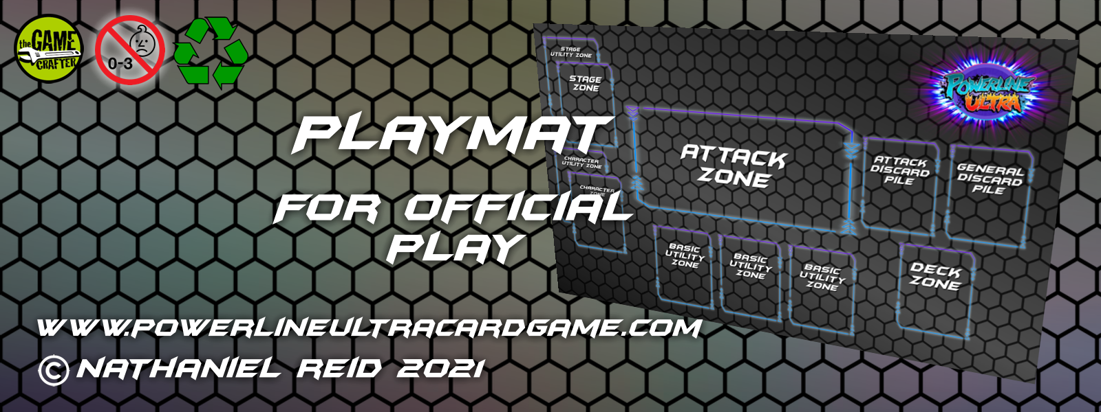 The real way to see where your cards go! The official Powerline Utlra playmats are the way to go if you really want to see and place where your cards go in your game of Powerline Ultra! Complete with clearly marked zones and a striking design made by the creator of the game, "Nate Reid"