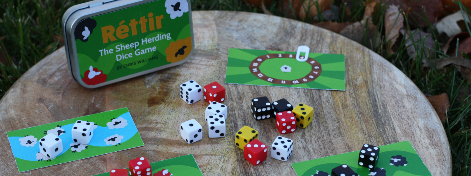 Based on the annual Icelandic tradition of gathering sheep before winter arrives, Réttir: The Sheep Herding Dice Game is an easy to learn and quick to play dice game for 2-7 players. Roll sheep dice and add them to herds to score points!