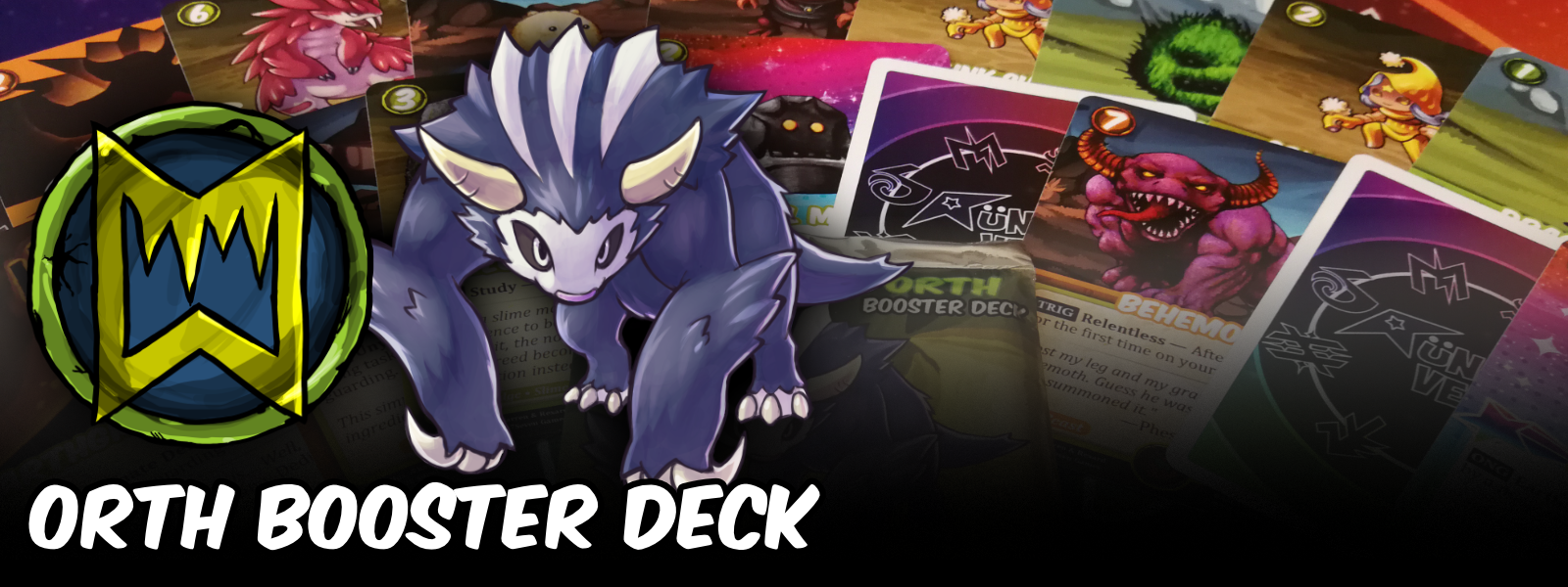 The Rüniverse: Orth Booster Deck includes 18 randomized cards in a mix of the Orth (yellow), Sphene (yellow-green), and Trine (orange) facets. There are 9 commons, 6 uncommons, and 3 rares, with a chance for Star Variant versions of cards. Shuffle the contents of this Booster Deck with the 12 Orth mages in the Orth vs. Thyst 2-Player Starter Set to form a starter deck. Orth is the yellow facet, the faction of underground terrain and patience. Orth’s featured traits in the Base set are Dedication, Earth, and Fungus.