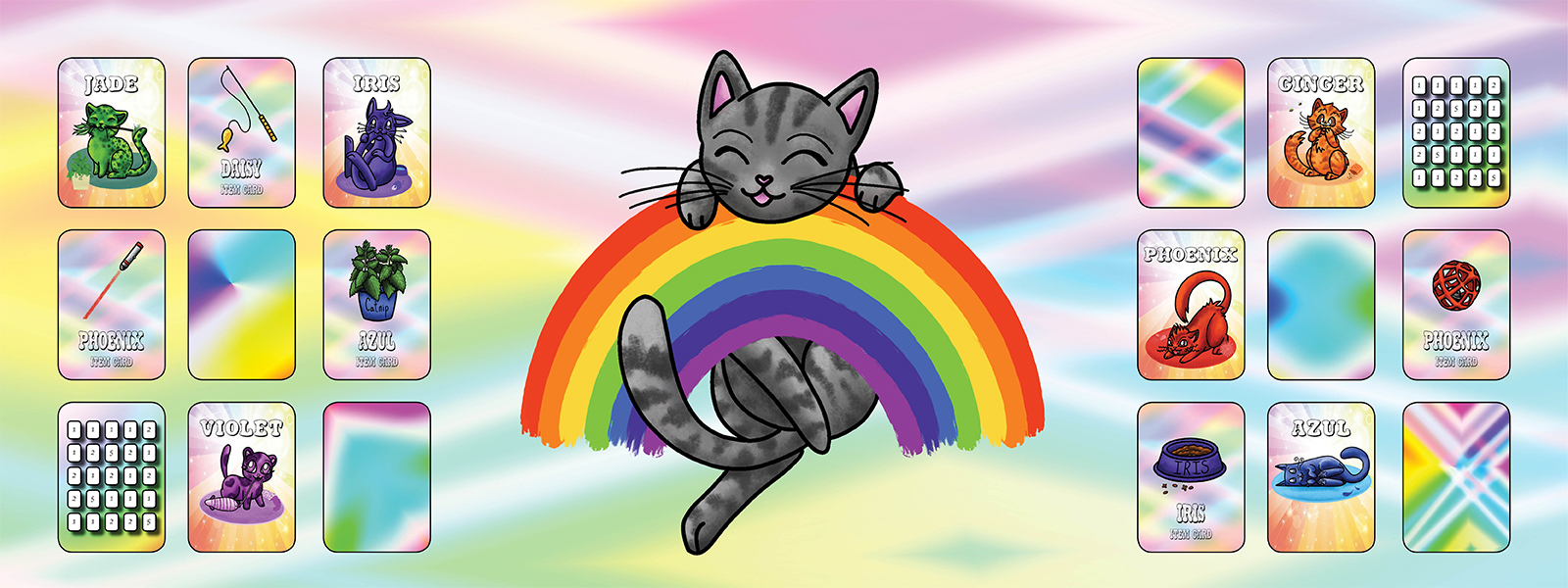 In Rainbow Cats, you'll be competing against other people to claim as much space in the house for your favorite cat's stuff while making sure your least favorite cat’s objects are nowhere to be seen. You'll keep your favorite and least favorite cat identities secret from everyone so you keep them guessing.