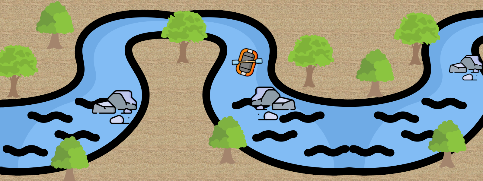 Thrills are abound as players embark on a white water rafting adventure. Play as either the crew of a raft or the roaring river itself. Will the adventurers outmaneuver the rapids and survive or will they be flung into the rocks and their untimely demise.