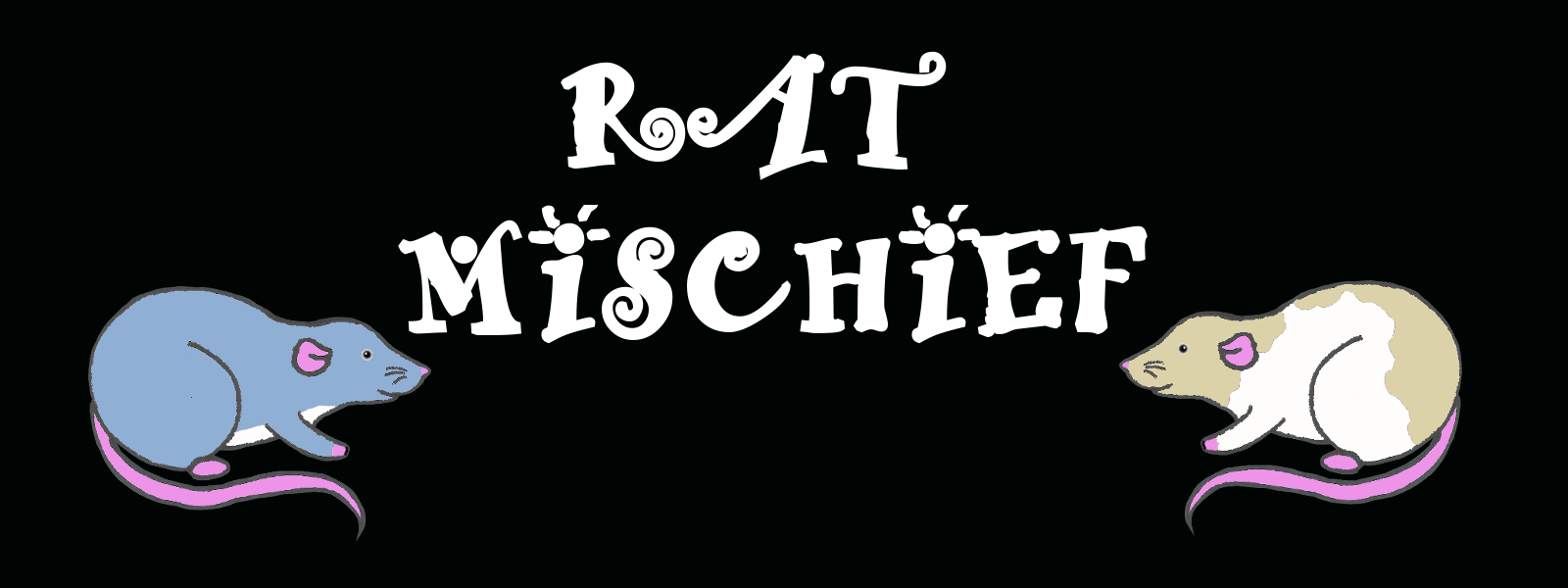 Rat Mischief was so named because a group of rats is actually called a mischief, and for any of you that know anything about rats, they are appropriately named! The goal of this game is to get your mischief to have eight rats before your opponents. There are various ways to earn rats, but there are also ways to lose them. The main component to the game is dice rolls. There are six sides to the dice – rat, candy, chocolate, toy, cards, and skull. To decide who goes first, all players roll all the dice. Whoever rolls the most rats goes first. In the event of a tie, the dice rolling continues until a clear winner emerges. The first way to gain a rat is by rolling enough rats on the dice; four gains you one and five gains you two. However, within three rolls, it can be difficult to roll four and five rats. That is why there are other ways to acquire them! There is also another way to gain rats by dice rolling: if you manage to roll five of a kind (except for skulls), you gain a rat! Another way is via treats. Rats LOVE treats. What are their favourite treats? Yogis! Yogis are variously flavored yogurt drops and are available in many pet stores. You gain a treat every time you either roll three candy, three chocolate, or three toys. When you have collected five treats, you can trade them in for a rat. To add a little spice to the game, there are also item cards. You are able to draw one if you roll three of the card draw symbols. There are various items: Thief (steal a treat from an opponent), Add Treat (add a treat to your hoard), Add Rat (add a rat to your mischief), Dice Change (change the outcome of one dice), Cat (remove a rat from an opponent’s mischief), and Toxoplasmosis (counteract cat). Most of you are probably scratching your head at “toxoplasmosis”. Here’s another fun fact I have added in – toxoplasmosis is a disease that rats can get that make them friendly towards cats! Otherwise the rest of the item cards are pretty self-explanatory. There are also multiple ways to lose a rat. The first is outlined above with the “cat” card but can, of course, be counteracted by the “toxoplasmosis” card. The other way is with the skull dice icons. If you are to roll three or more skulls, you lose a rat from your mischief and your turn ends. There are two basic types of rats in this game – top ear and dumbo. These relate to the placement of their ears. As you can probably guess, the top ears have their ears more on top of their head and the dumbo’s ears are more on the side of their head. Each of the colors and patterns are made to have one top ear and one dumbo variation. The colors of rats that I made are albino, black, blue (a shade of grey), brown, champaign (or cream), grey, and naked (or hairless). The designs include full color, tuxedo (colored with a white belly), and hooded (the head and spots along the back and rump are colored). Of course the albinos are white with red eyes and the naked rats are pink. There are also a couple of “husky” rats as well. There are of course more designs of rats, but I tried to keep it simple.