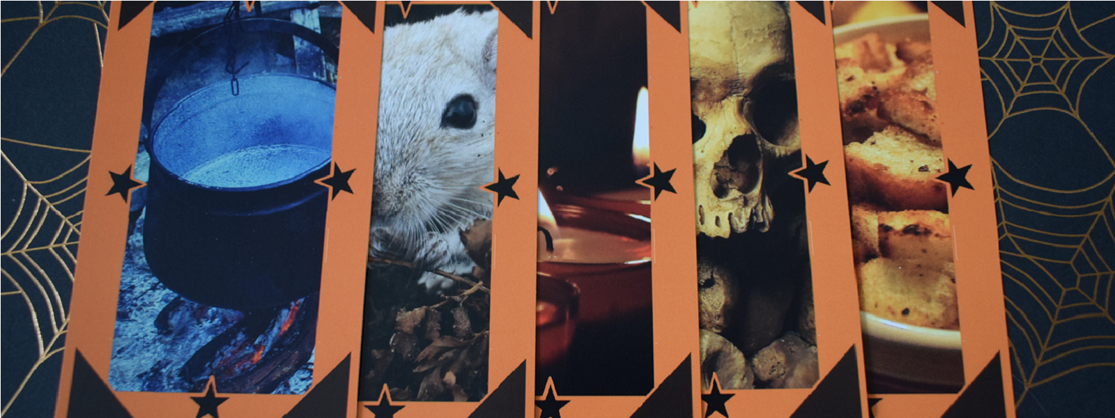 Some of the cards include: Cauldron, Candle, Skull, Soup, Autumn leaves, Smokey quartz, Acorn, Spiderweb, Mist, Witch hat, Apple, Jack-o-lantern, Candy Corn, And many others.