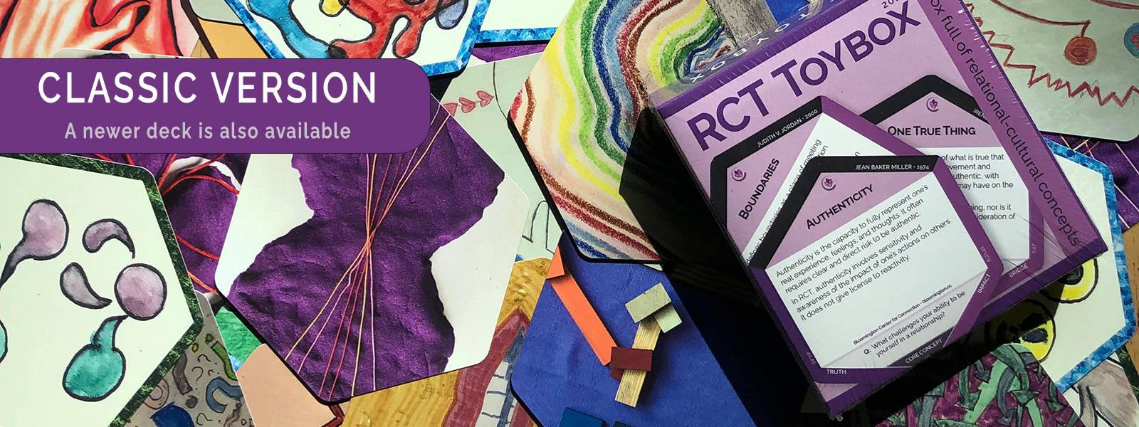 The RCT Toybox is a deck of 48 cards that define, illustrate, and connect important concepts central to Relational-Cultural Theory (RCT). RCT concepts were originally conceived by founding and continuing scholars at the International Center for Growth and Connection, the Jean Baker Miller Training Institute, Wellesley’s Stone Center, and Monday nights in the living room of Miller’s home.