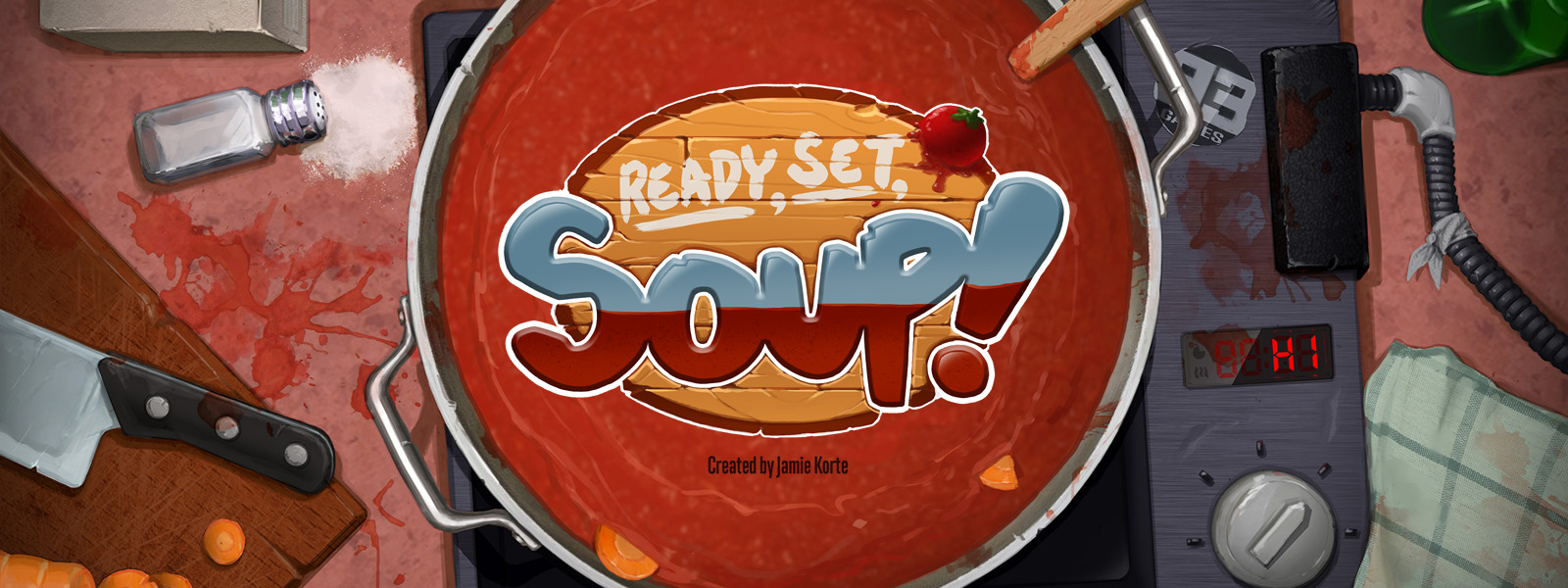 Ready, Set, Soup! Is a quick and simple set completion card game where the objective is to be the first person to complete their secret soup recipe; while also stopping your opponents from doing the same. Quick to learn, accessible to younger players and with rounds taking no more than 15 minutes to play; This makes for a perfect family game that is light and quick to play all while having a fun theme... Cooking Soup!