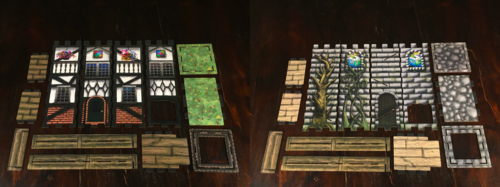 This dice tower features 2 different designs in one — castle tower and a tudor house. Disassemble to pack it away, and rebuild any time and choose a different design each time.
