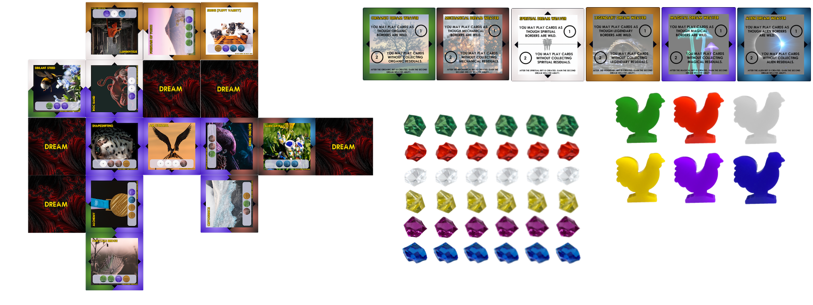 As you play cards, you must collect "residuals" which represent stability in this dream world. These residuals create an ever-expanding border that threatens to encompass your entire play area! If you cannot create all six rifts before your dream becomes too stable, you will be trapped and have lost all memory of reality.